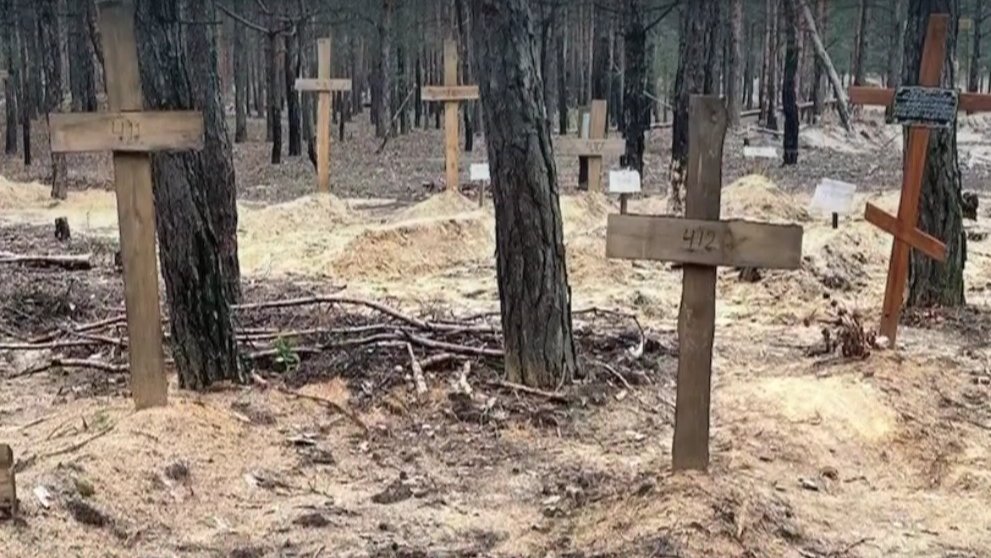 В городе Изюм Харьковской области, откуда ушли российские военные, нашли массовое захоронение на 440 могил