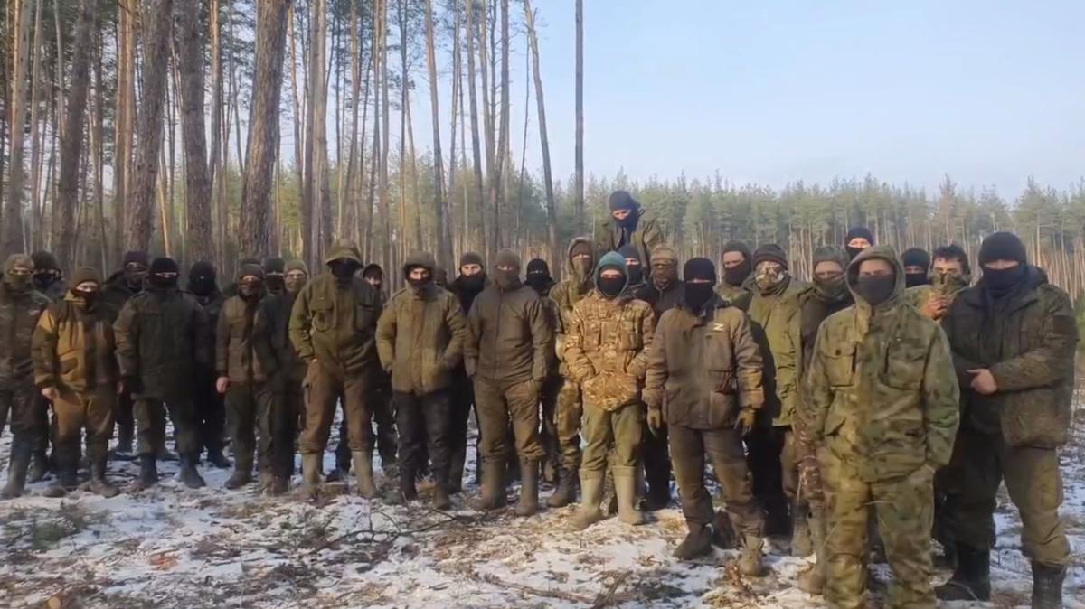 «У нас были только автоматы, а все остальное вооружение было повреждено», — говорит один из 30 людей в военной форме на видео.