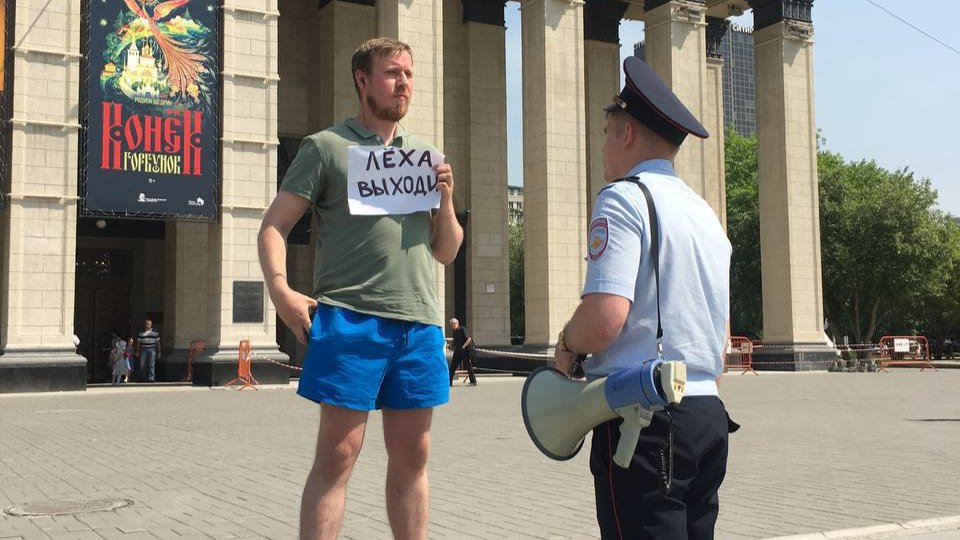 Один из первых задержанных в Москве — человек с плакатом «Свободу и кенгуру, Путин — паук», стоявший на Красной площади, сообщает «ОВД-Инфо». Ивана Путятина доставили в отделение полиции «Китай-город», на него составили протокол о нарушении правил проведения пикета (ч. 5 ст. 20.2 КоАП) и неповиновении полиции (ч. 1 ст. 19.3 КоАП).