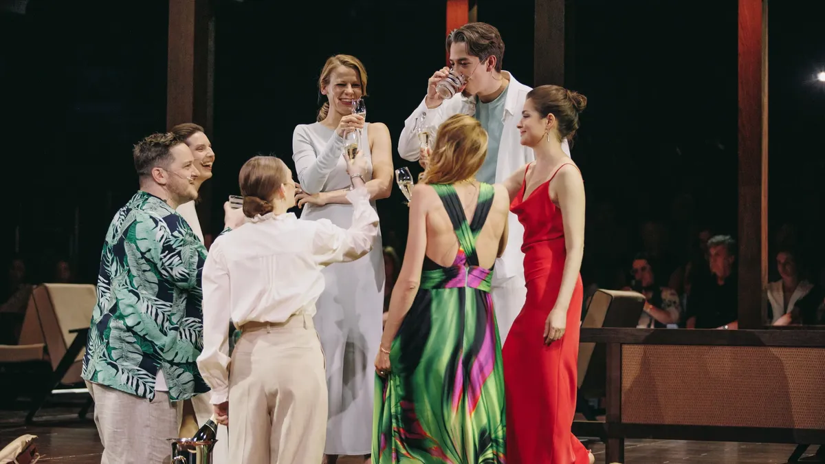 Если вы решили посмотреть «Дачников на Бали», не хватайтесь за Горького, пытаясь освежить в памяти пьесу или скачать очередной пересказ за 8 минут. Вместо этого перечтите июльский опус Богомолова «Я умру, а вы останетесь?» Пузырящийся пафосом манифест — конспект режиссерских размышлений о новых «Дачниках». Читать его непросто, приходится пропускать абзацы, скопипащенные из советских передовиц. Но чтение займет меньше, чем три часа двадцать минут: ровно столько актеры Театра на Бронной транслируют почти те же мысли со сцены.
