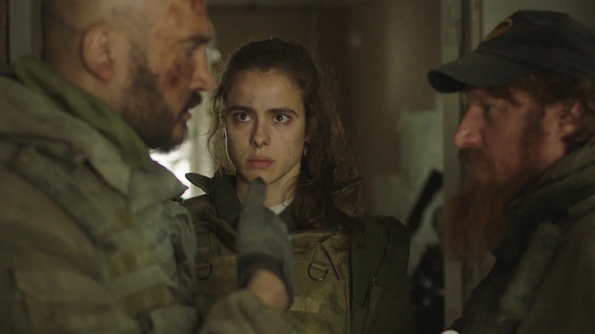 Склейка, взрывы, ямы да канавы, переносимся на Донбасс к ополченцам. «Укроп опять попер? Или это провокация какая-то? — орут бегущие откуда-то куда-то бойцы. — Да мы восемь лет уже тут танцуем, а россияне всё запрягают!»