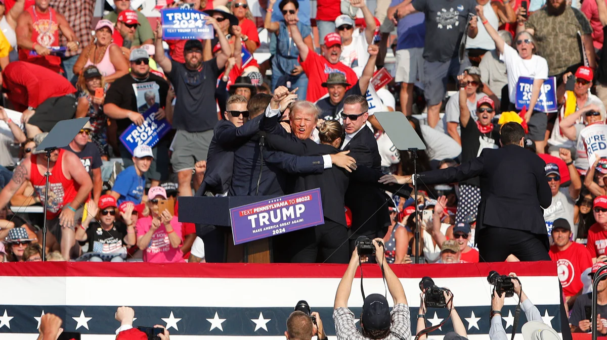 Кандидат в президенты США от Республиканской партии Дональд Трамп был ранен во время предвыборного митинга в Пенсильвании. Один участник встречи погиб, двое мужчин получили тяжелые ранения. Охрана застрелила нападавшего. Представители Трампа позднее сообщили, что с экс-президентом «всё в порядке».