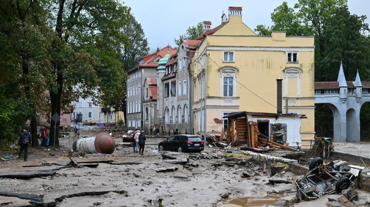 Разрушения на затопленных улицах после сильных дождей в Глухолазах, юго-западная Польша, 15 сентября 2024 года. Фото: Michal Meissner / EPA-EFE