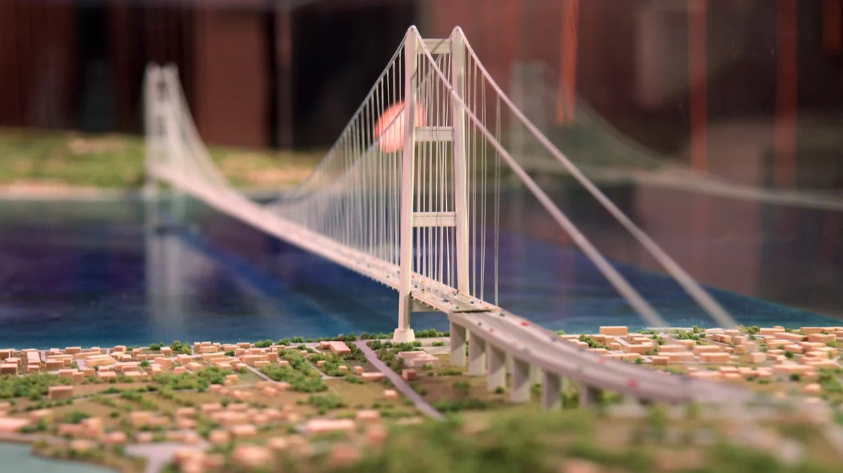 Это будет самый длинный подвесной мост в мире, утверждается в окончательном проекте Межведомственного комитета по экономическому планированию и устойчивому развитию. Длина основного пролета составит 3,3 километра, его будут поддерживать две башни высотой 399 метров.