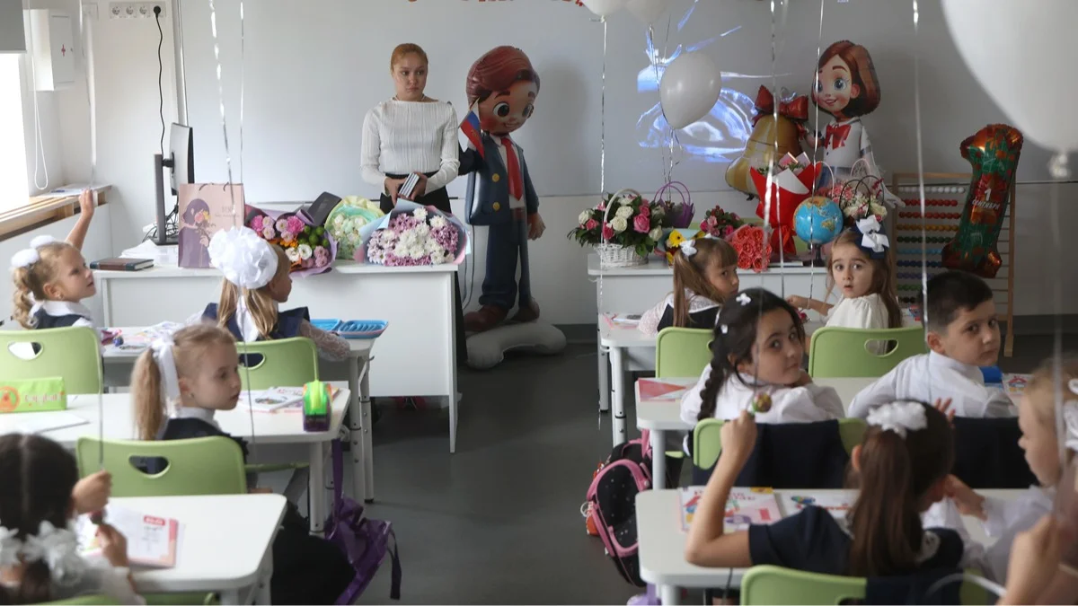 Первоклассники на первом уроке в школе в Москве, 1 сентября 2025 года. Фото: Максим Шипенков / EPA