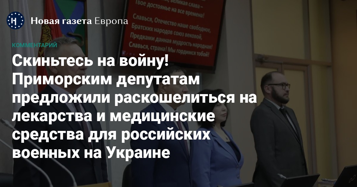 Депутаты Законодательного собрания Приморского края по просьбе командующего Тихоокеанским флотом адмирала Сергея Авакянца покупают медикаменты для российских военных на Украине. Нужны пластыри и повязки, гемостатические средства, антибиотики, медицинский спирт, перикись водорода, препараты для лечения простудных заболеваний — всего в списке 36 позиций. Об этом приморским депутатам объявил спикер Законодательного собрания Александр Ролик после апрельской сессии 20 апреля в режиме «без посторонних ушей». Парламентариев настоятельно попросили скинуться по 10 тысяч рублей, чтобы уже в пятницу спецборт доставил все необходимое на фронт. Всего надо собрать около 350 тысяч рублей.