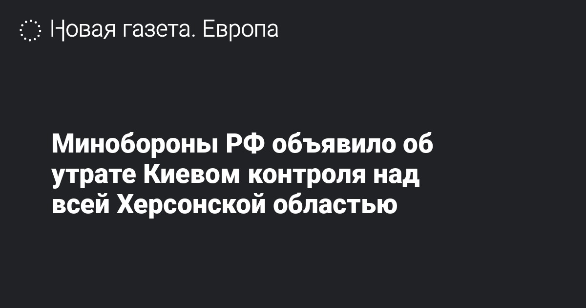 Министерство обороны России объявило об утрате Киевом контроля над всей Херсонской областью. Об этом, как передает «Интерфакс», сообщил начальник Национального центра управления обороной России генерал-полковник Михаил Мизинцев.