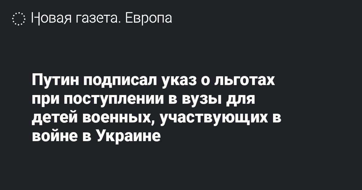 «Правительству РФ обеспечить установление образовательными организациями высшего образования для детей военнослужащих, принимающих участие в специальной военной операции, в том числе погибших при исполнении обязанностей военной службы, специальной квоты приема на обучение по образовательным программам высшего образования (программам бакалавриата и программам специалитета)», — сказано в указе.
