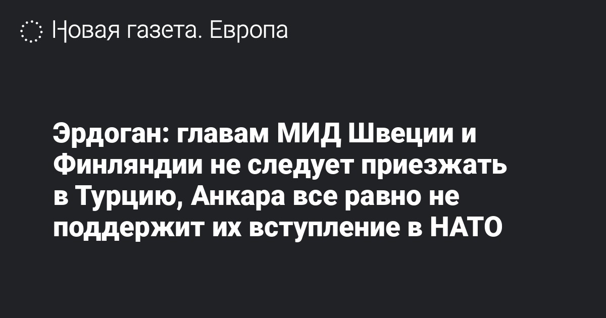 Турция не поддержит вступление Швеции и Финляндии в НАТО, заявил президент страны Реджеп Тайип Эрдоган. Его слова приводит Daily Sabah.