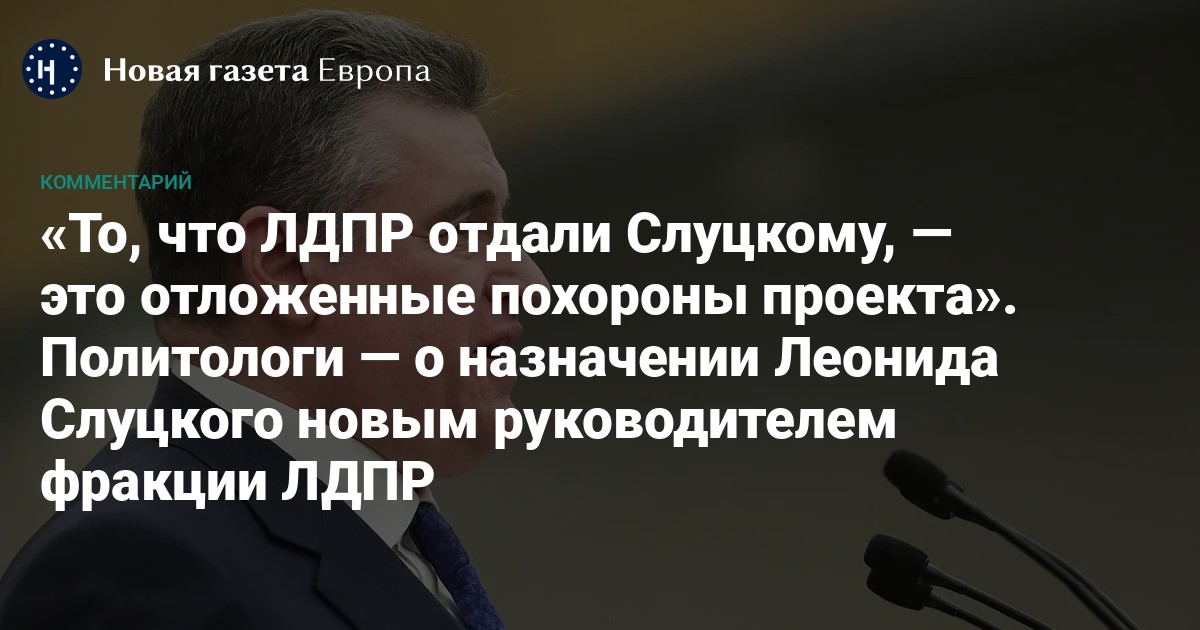 — То, что ЛДПР отдали Слуцкому, — это отложенные похороны проекта. Слуцкий имеет только аппаратный и внутриэлитный вес, в качестве фронтмена популистской партии этот высокомерный бюрократ совершенно не представляет никакой ценности. Сомневаюсь, что у него вообще есть какой-то личной рейтинг за пределами узкого круга профессиональных наблюдателей. То есть, до думских выборов, если они вообще будут, он будет пользоваться всеми возможностями лидера думской партии, но на выборах ЛДПР не пройдет барьер и на этом для партии все закончится. Слуцкий в думу изберется как одномандатник и войдет во фракцию ЕР.