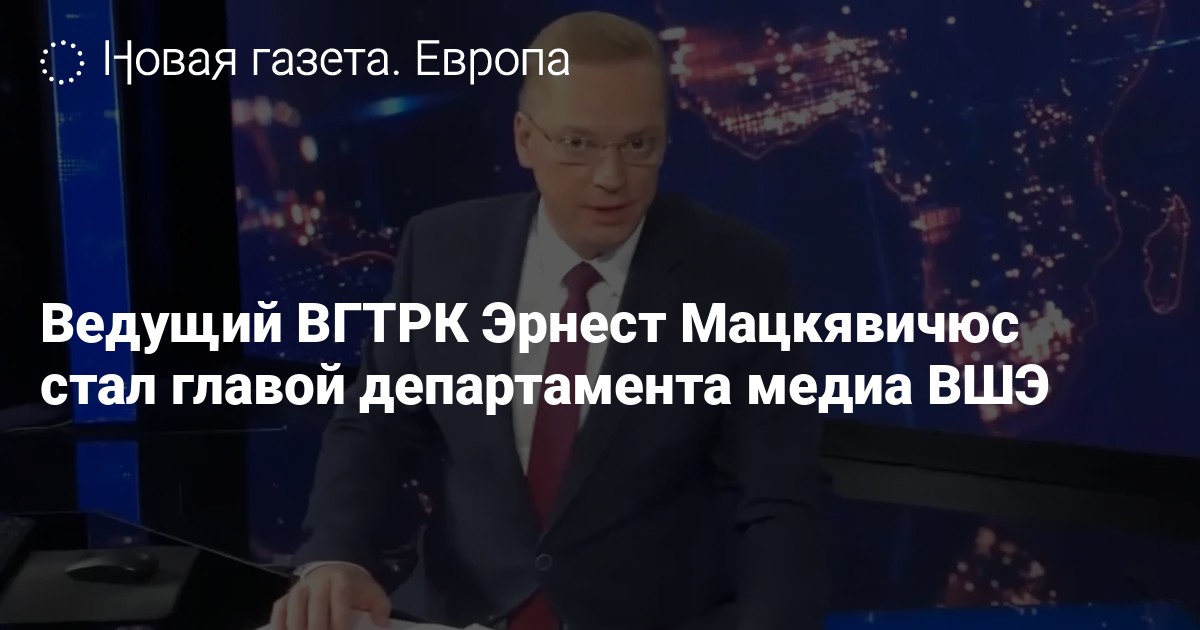 Ведущий ВГТРК Эрнест Мацкявичюс с понедельника возглавит департамент медиа НИУ «Высшая школа экономики». Об этом «Новой газете. Европа» сообщил источник в вузе.