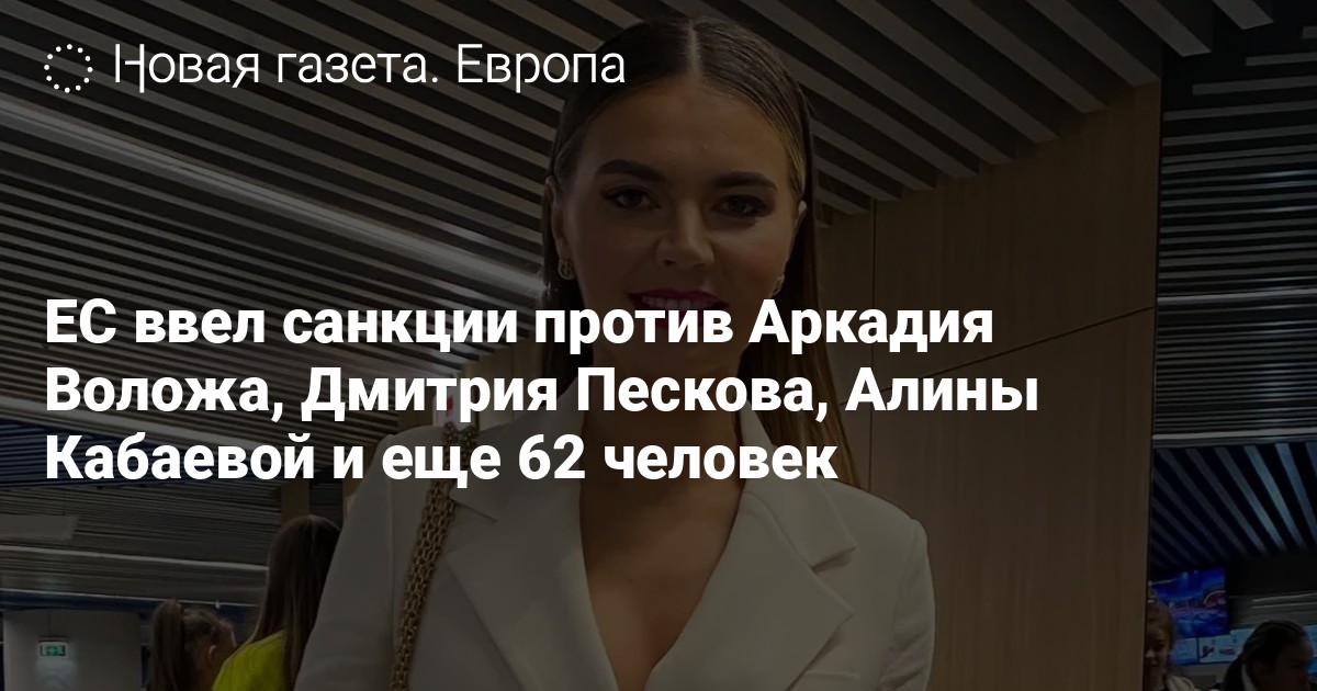 В санкционный список попали 65 физических и 18 юридических лиц из России. В том числе, санкции ввели против председателя совета директоров «Национальной медиа группы» Алины Кабаевой, Павла Пригожина (сына Евгения Пригожина), пресс-секретаря президента России Дмитрия Пескова, его дочери Елизаветы, сына Николая и жены Татьяны Навки. Ограничения коснутся трех авторов РИА Новости — Петра Акопова, Виктории Никифоровой Тимофея Сергейцева.