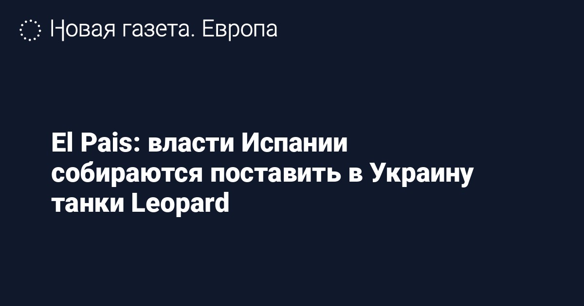 Власти Испании собираются поставить в Украину тяжелое вооружение, зенитно-ракетные комплексы и танки Leopard 2A4. Об этом пишет El Pais со ссылкой на источники в правительстве.