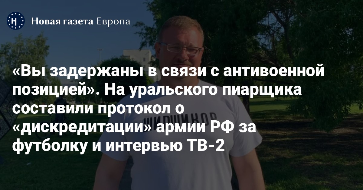 Сотрудники Центра «Э» задержали в Екатеринбурге пиарщика и гражданского активиста Ярослава Ширшикова. Его обвинили в «дискредитации использования российских вооруженных сил за рубежом» (ч. 1 ст. 20.3.3 КоАП), сообщил сам Ширшиков «Новой газете. Европа».