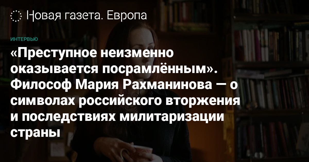 Зачем выстраивать букву «Z» телами детей? Как заставить общество хотеть войны? И какова связь между русской культурой и нынешними политическими событиями? Об этом «Новая газета. Европа» поговорила с доктором философских наук и художницей Марией Рахманиновой.