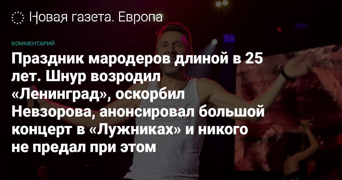 Группе «Ленинград» в следующем году исполнится 25 лет. 25 лет — шаг целого поколения. И это поколение с полным правом может сказать, что выросло на его песнях. Их слушали и принимали близко к сердцу те самые ребята, которые посылают сейчас домой стиральные машины и холодильники из Ирпеня и Бучи, запускают ракеты по торговым центрам, бьют пленных. А потом погибают, и собственным матерям их не жалко. Все строго по Шнурову: «Никого не жалко, никого, ни тебя, ни меня, ни его». В этой вселенной все равны, но не равенством воинов, тружеников, борцов за свободу, а равенством мародеров. Никого не жалко и все позволено.