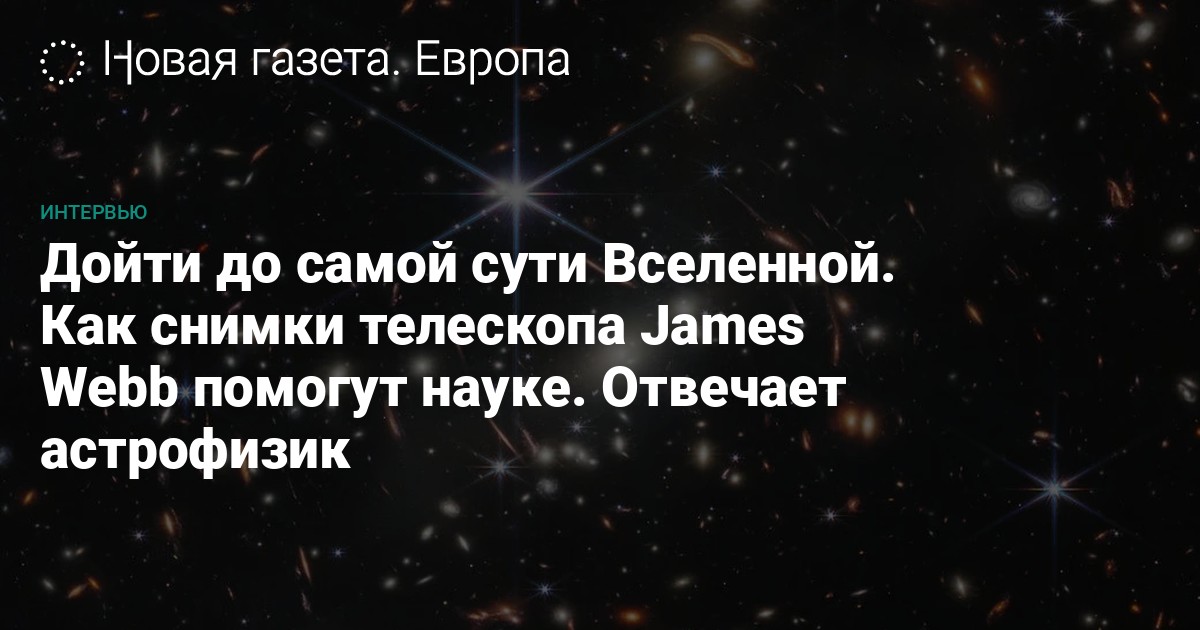 Недавно были опубликованы первые снимки дальнего космоса, полученные космическим телескопом «Джеймс Уэбб». Надежда Закамская, американо-российский астроном, выпускница МФТИ (диплом с отличием), Ph.D. Принстонского университета, профессор астрофизики Университета Джонса Хопкинса (США), ответила на вопросы «Новой газеты. Европа».