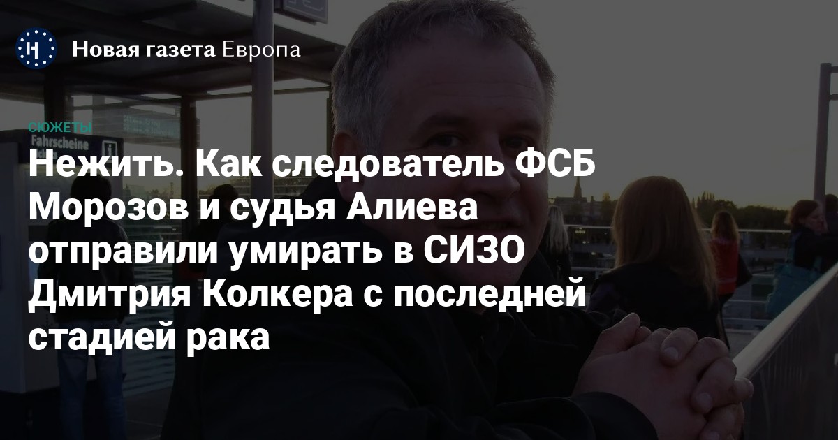 «Новая газета Европа» рассказывает о том, каким был ученый Дмитрий Колкер, а также рассказывает об исполнителях в этом деле, которые в России вряд ли понесут ответственность — следователе Морозове и судье Алиевой, не дрогнувших перед отправкой человека с последней стадией рака в тюрьму.