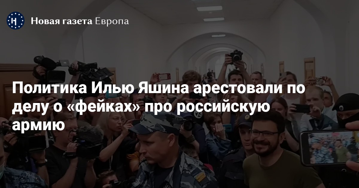 Басманный суд Москвы арестовал оппозиционного политика Илью Яшина по делу о «публичном распространении заведомо ложной информации об использовании Вооруженных Сил РФ» (п. «д» ч.2 ст.207.3 УК), передает корреспондент «Новой газеты Европа» из зала суда. Заседание прошло в закрытом режиме.