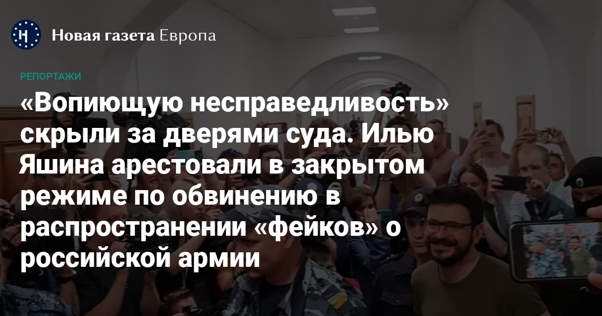 Политик и муниципальный депутат Илья Яшин не успел выйти на свободу из спецприемника после 15 суток административного ареста. Его сразу задержали и повезли на обыск по уголовному делу. Оппозиционеру вменяют статью за распространение «фейков» о российской армии. Поводом для преследования стал эфир, в котором Яшин рассказывал про действия российских солдат в украинской Буче. На допросе в СК он отказался признать вину и назвал дело против него «политически мотивированным». 13 июля Басманный суд Москвы отправил Яшина в СИЗО на два месяца. Заседание провели без публики и прессы.