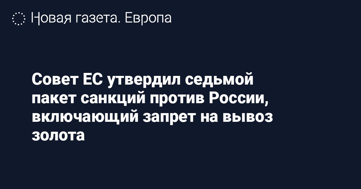 Совет Евросоюза утвердил седьмой пакет санкций против России, сообщила глава Еврокомиссии Урсула фон дер Ляйен.