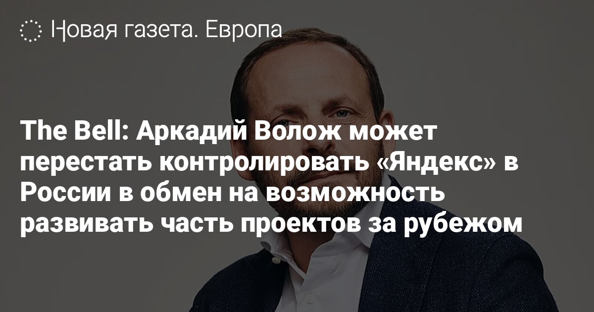 Основатель «Яндекса» Аркадий Волож может отказаться от контроля над компанией в России, если получит взамен права на развитие ее проектов за рубежом. Об этом пишет The Bell со ссылкой на источники, знакомые с ходом переговоров.