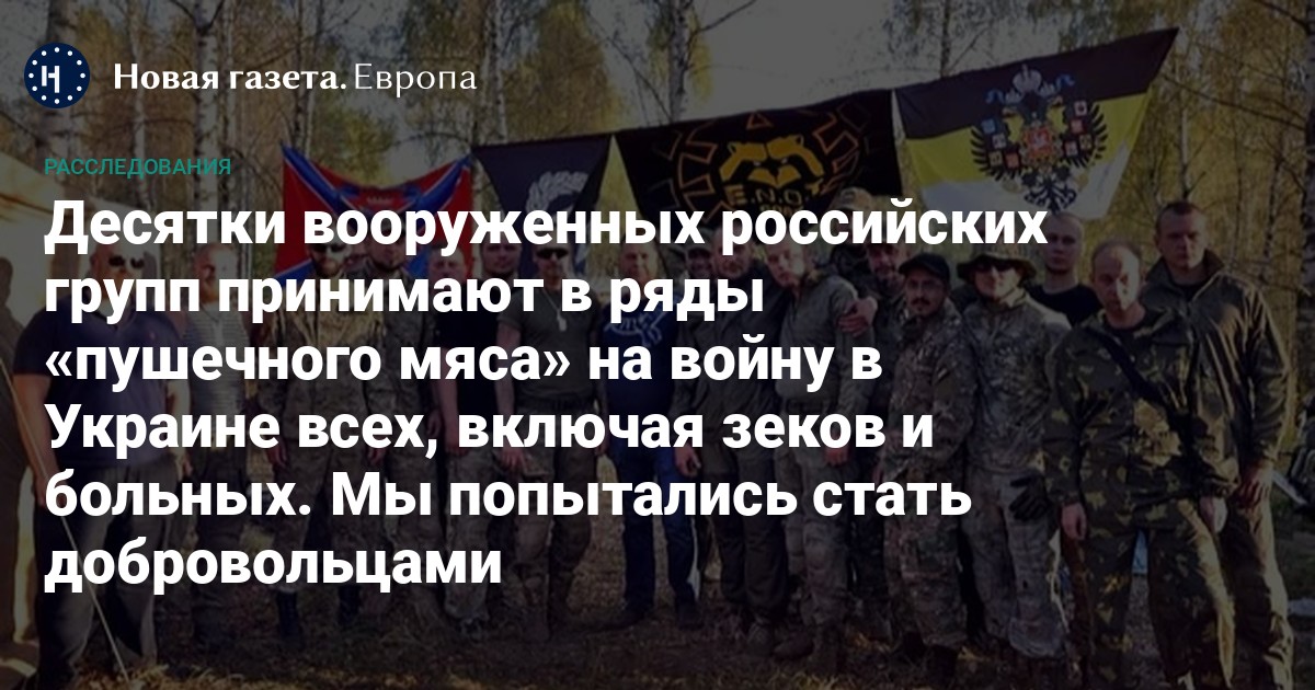 «Новая газета. Европа» насчитала 52 батальона и 10 других формирований, которые открыто набирают добровольцев и конкурируют за «живую силу» между собой. Наши корреспонденты откликнулись на объявления и узнали, кто и как вербует «наемников», кому подчиняются добровольческие батальоны и какую подготовку проходят солдаты перед отправкой на фронт.