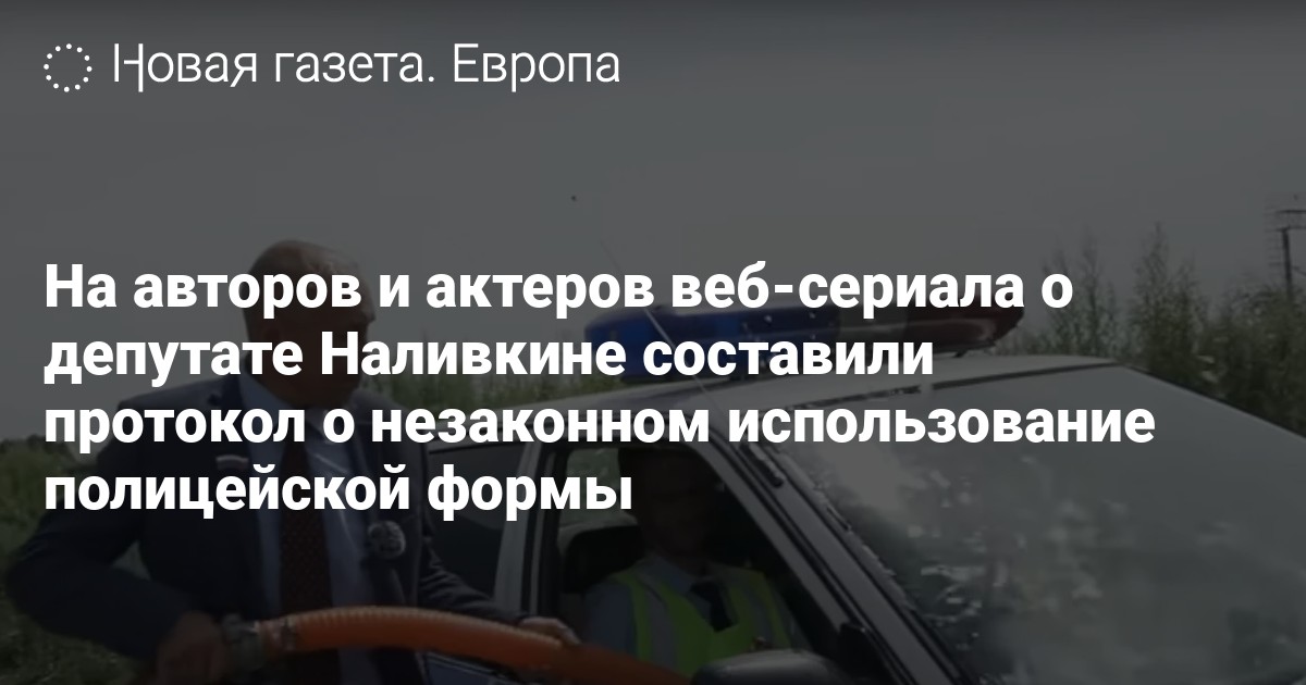 В Приморье на авторов сатирического веб-сериала про вымышленного депутата Виталия Наливкина составили административный протокол за незаконное использование формы полиции и служебной машины во время съемки (ст. 17.12 КоАП). Об этом «Сибирь.Реалии» рассказал продюсер Андрей Клочков.