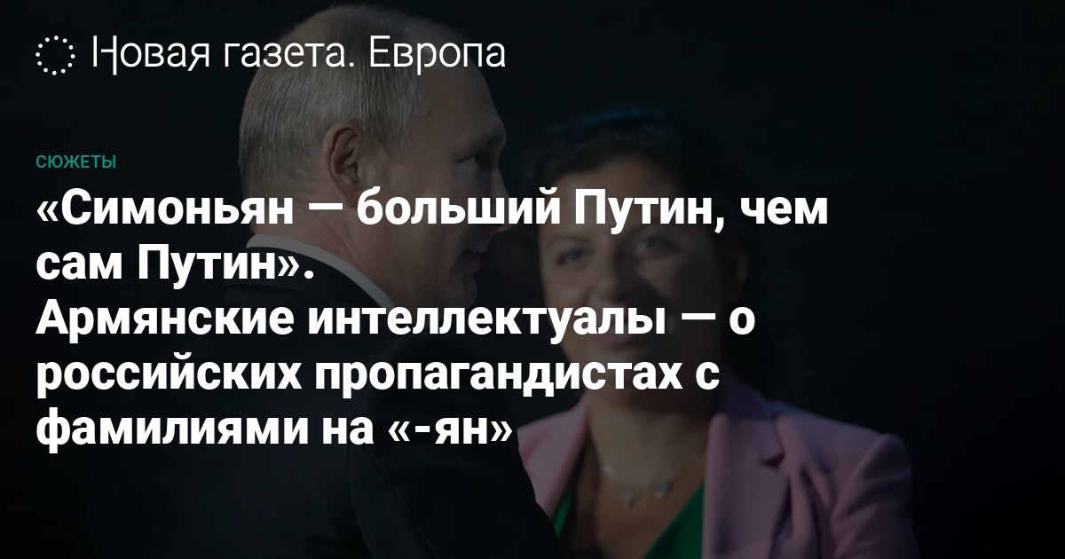 Их много. Симоньян, Кеосаян, Гаспарян, Кургинян, Габрелянов… Ряд такой длинный, что складывается ощущение: путинская пропаганда — армянская, армяне за Путина. Это, мягко говоря, не совсем так. Вернее, совсем не так.