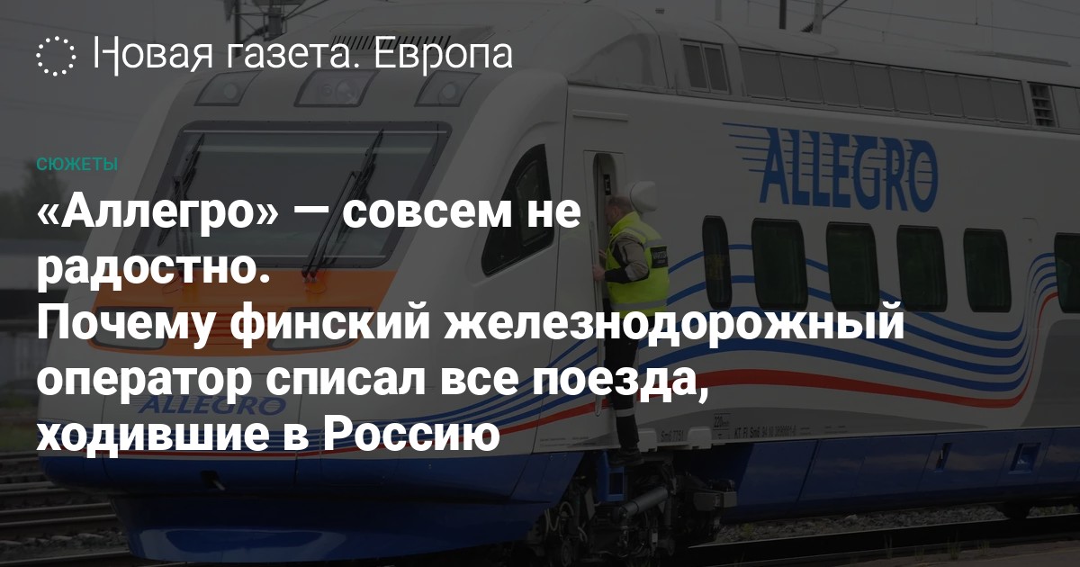 30 августа финская государственная железнодорожная компания VR Group опубликовала финансовый отчет за первое полугодие 2022 года. В Финляндии он заинтересовал, главным образом, экономические издания, зато в России произвел эффект разорвавшейся бомбы. Одной-единственной строчкой: «Компания списала весь подвижной состав и запасные части, связанные с поездами «Аллегро», на общую сумму 45,4 млн евро». Издание «Фонтанка» озаглавило новость об этом драматично: «Точка невозврата».