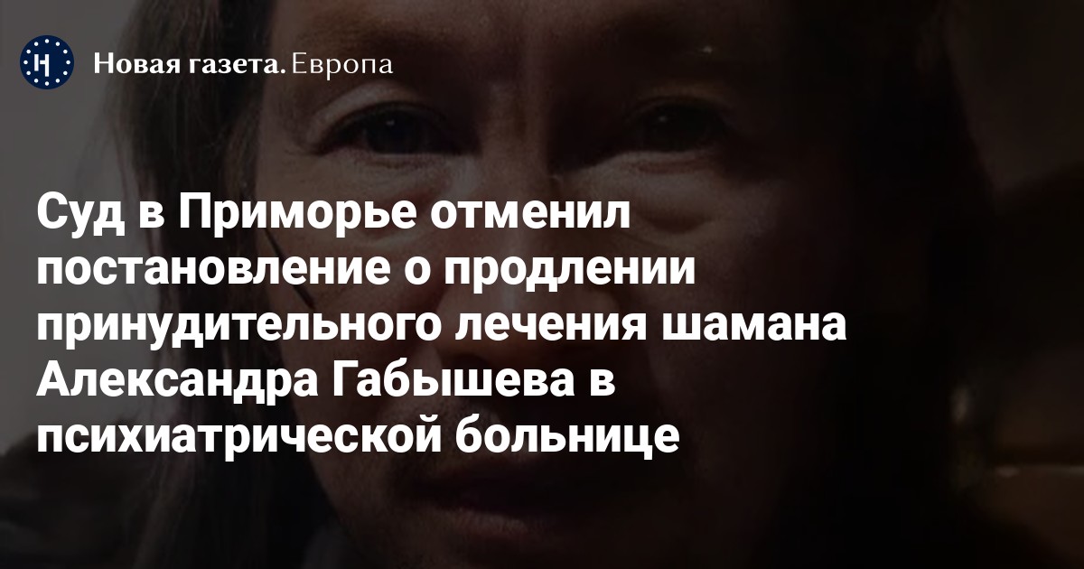 Приморский краевой суд удовлетворил апелляционные жалобы защиты и отменил постановление Уссурийского районного суда о продлении принудительного лечения шамана Александра Габышева в психиатрической больнице специализированного типа с интенсивным наблюдением в Уссурийске. Об этом в телеграм-канале сообщил его адвокат Алексей Прянишников.