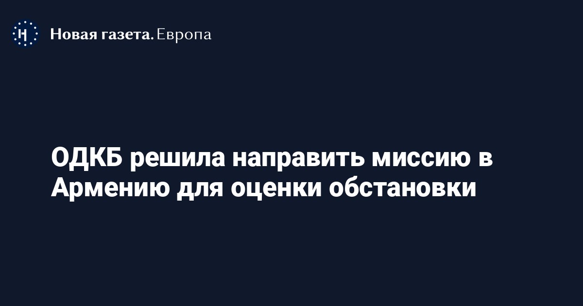 Совет коллективной безопасности Организации Договора о коллективной безопасности (ОДКБ) решил направить в Армению миссию во главе с генсеком Станиславом Засем для оценки обстановки и подготовки доклада главам государств. Об этом сообщает «Интерфакс» со ссылкой на секретариат организации.