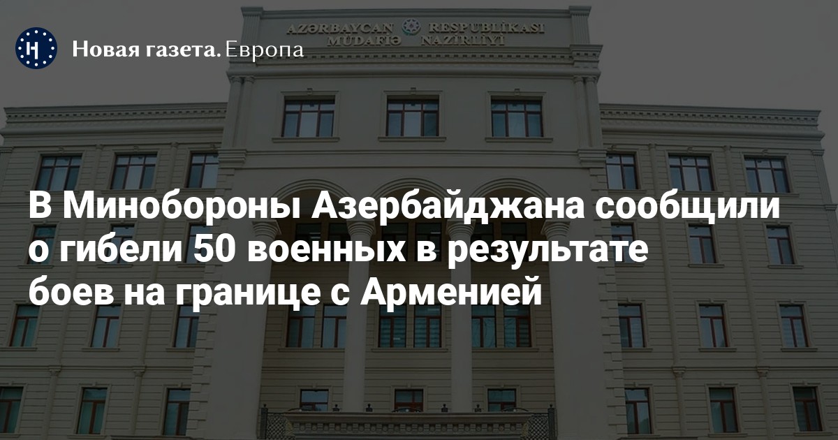 В ходе боестолкновений на армяно-азербайджанской границе погибли 50 военных Азербайджана, сообщили в Минобороны страны.