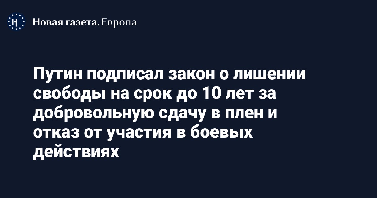В соответствии с ними вводится уголовная ответственность за добровольную сдачу в плен (от трех до десяти лет лишения свободы). Статьи «Добровольная сдача в плен» ранее не было в российском уголовном кодексе.