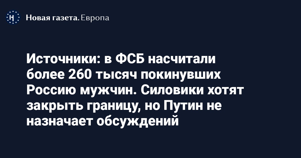 Обсуждения внутри АП о закрытии границ для мужчин призывного возраста начались со среды, когда от силовиков стали поступать цифры о количестве мужчин, которые выезжают из России. По его словам, в последней справке ФСБ, которая сегодня, 25 сентября, «гуляла по кабинетам» значится цифра в 261 тысячу мужчин, уехавших из России со среды по вечер субботы.
