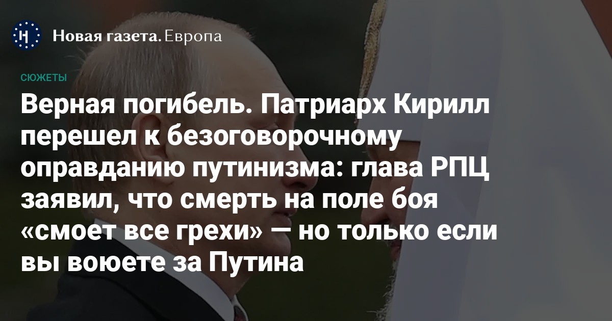 Несмотря на предельный пафос своих настойчивых призывов погибнуть, глава РПЦ так и не смог ни разу внятно объяснить смысл и цель этой «военной операции» или, как он говорит теперь, «междоусобной брани».