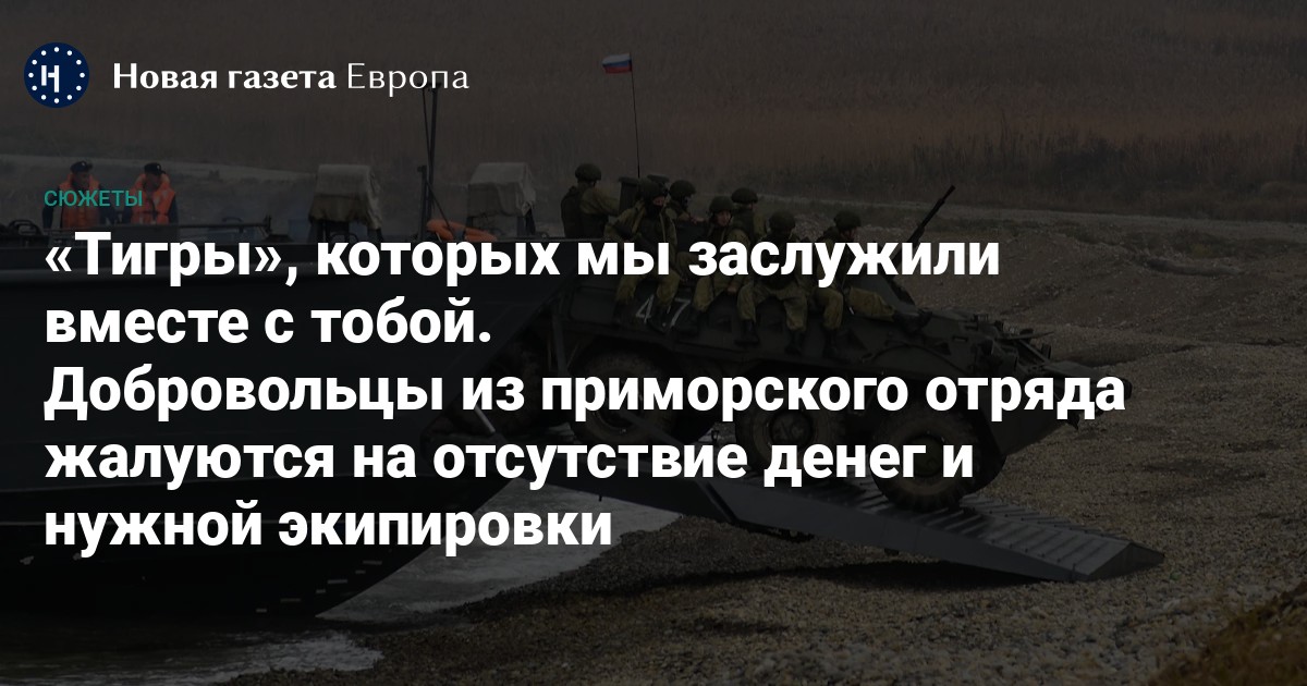 На базе 155-й отдельной гвардейской бригады морской пехоты Тихоокеанского флота во Владивостоке уже несколько месяцев готовят добровольцев для участия в спецоперации на Донбассе. Батальон получил имя «Тигр». Как сообщал губернатор Приморья Олег Кожемяко, сейчас к отправке готовится вторая группа бойцов. В «Тигр» входят добровольцы 18–60 лет из разных регионов, в основном с Дальнего Востока.