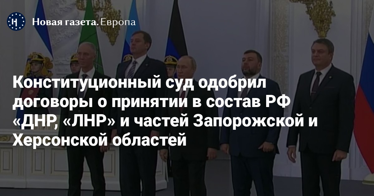 Конституционный суд России признал соответствующими Конституции РФ договоры о присоединении к стране «ДНР», «ЛНР», а также частей Запорожской и Херсонской областей. Об этом сообщается на сайте суда.