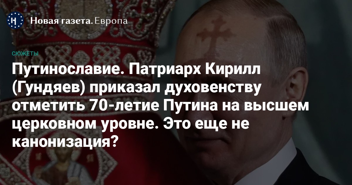 Совсем другая атмосфера царит в РПЦ патриарха Кирилла (Гундяева). Уклонившийся от участия в церемониях «принятия в состав РФ» всех шести регионов, которые Украина считает неотъемлемой частью своих территорий (в 2014 и 2022 гг.), Кирилл решил придать юбилею любимого им президента характер церковного празднования. Накануне этого священного дня, 6 октября, по епархиям и приходам РПЦ по благословению предстоятеля был разослан циркуляр за подписью управделами патриархии митрополита Дионисия (Порубая). Официальный сайт патриархии опубликовал его только вечером, а первые «утечки», состоявшиеся утром, вызвали у части духовенства и церковного народа серьезные сомнения: не фейк ли? Настолько фантасмагорическим даже на фоне привычного патриархийного сервилизма показался этот текст.