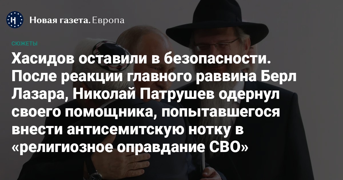 которые годами скрупулезно выстраивались при деятельном участии главного раввина, получившего за это из рук Путина ряд высших российских орденов. Патрушев признал «мотивационные» суждения Павлова о хасидах «ошибочными», принес свои извинения и заверил, что статья «ни в коем случае не является официальной позицией Совета безопасности Российской Федерации». «С автором статьи проведена соответствующая работа», — добавил Николай Патрушев.