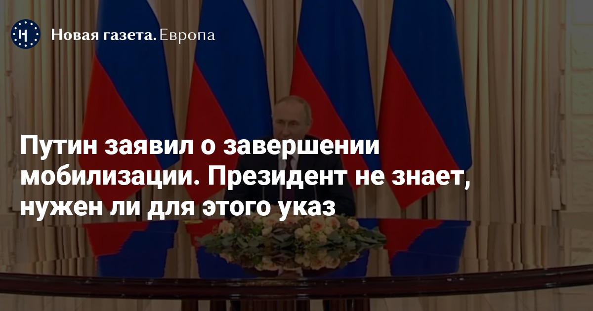 Президент России Владимир Путин объявил о завершении «частичной» мобилизации в стране, но официального указа еще нет. Он сделал заявление во время ответов на вопросы журналистов в Сочи.