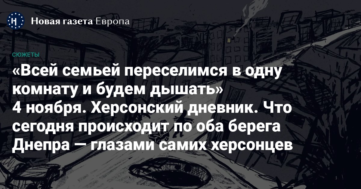 Сейчас объявлена эвакуация, из города вывозят людей. Пишут, что в связи с предстоящими обстрелами города со стороны ВСУ они [оккупанты] нас «спасают». Мы пока не знаем, как реагировать. Хуже всего как раз то, что никакой ясности. Ничего не знаешь, что происходит и как будет дальше в городе. Эвакуируют весь город и ближайшие села. Боюсь, что придут с принудительной эвакуацией, силой выгонят. По идее, им больше дома у реки нужны, где они окопы роют.
