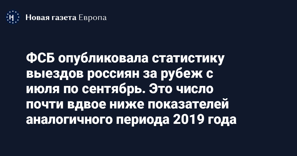 Федеральная служба безопасности (ФСБ) РФ опубликовала статистику выездов россиян за рубеж с июля по сентябрь, обратило внимание издание РБК.