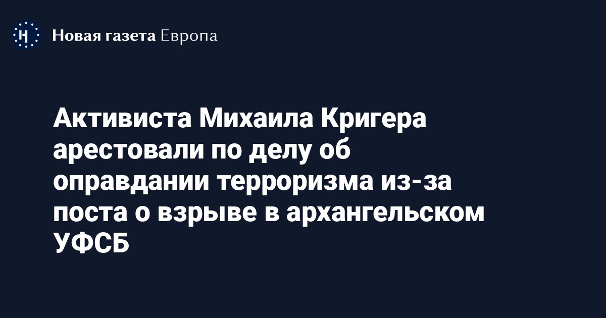 5 ноября Черемушкинский суд арестовал на два месяца 62-летнего активиста и члена «Солидарности» Михаила Кригера по обвинению в оправдании терроризма. Поводом для уголовного преследования Кригера, по информации СМИ, стал некий пост в фейсбуке, написанный активистом в 2020 году.