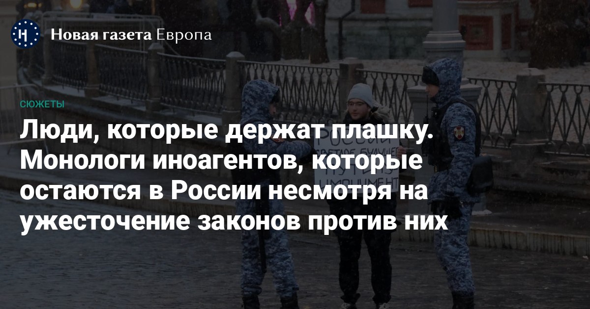 С 1 декабря для иностранных агентов меняется практически все: от плашки «ДАННОЕ СООБЩЕНИЕ…» до реестров, в которые теперь их будут помещать. Многие из получивших этот статус людей уже покинули страну, но некоторые из них еще остаются в России и даже продолжают публично рассказывать о происходящем в стране после начала войны. «Новая газета Европа» собрала монологи нескольких оставшихся иностранных агентов.