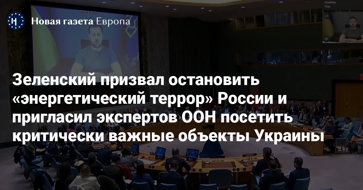 Президент Украины Владимир Зеленский в ходе выступления по видеосвязи на экстренном заседании Совета Безопасности ООН, созванном по его просьбе, призвал остановить «энергетический террор» России и пригласил экспертов ООН проинспектировать критически важные объекты украинской инфраструктуры. Обращение украинского президента опубликовано в его телеграм-канале.