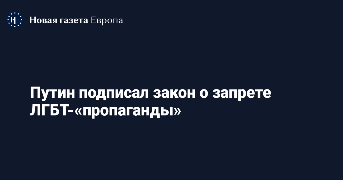 Президент России Владимир Путин подписал закон о полном запрете «пропаганды» ЛГБТ в России. Об этом сообщается в электронной базе документов Госдумы.