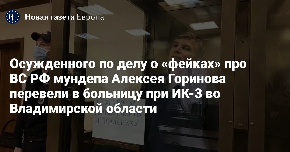Осужденного по делу о «фейках» про российскую армию муниципального депутата Красносельского района Москвы Алексея Горинова перевели в больницу при колонии. Об этом сообщает телеграм-канал группы поддержки политика.