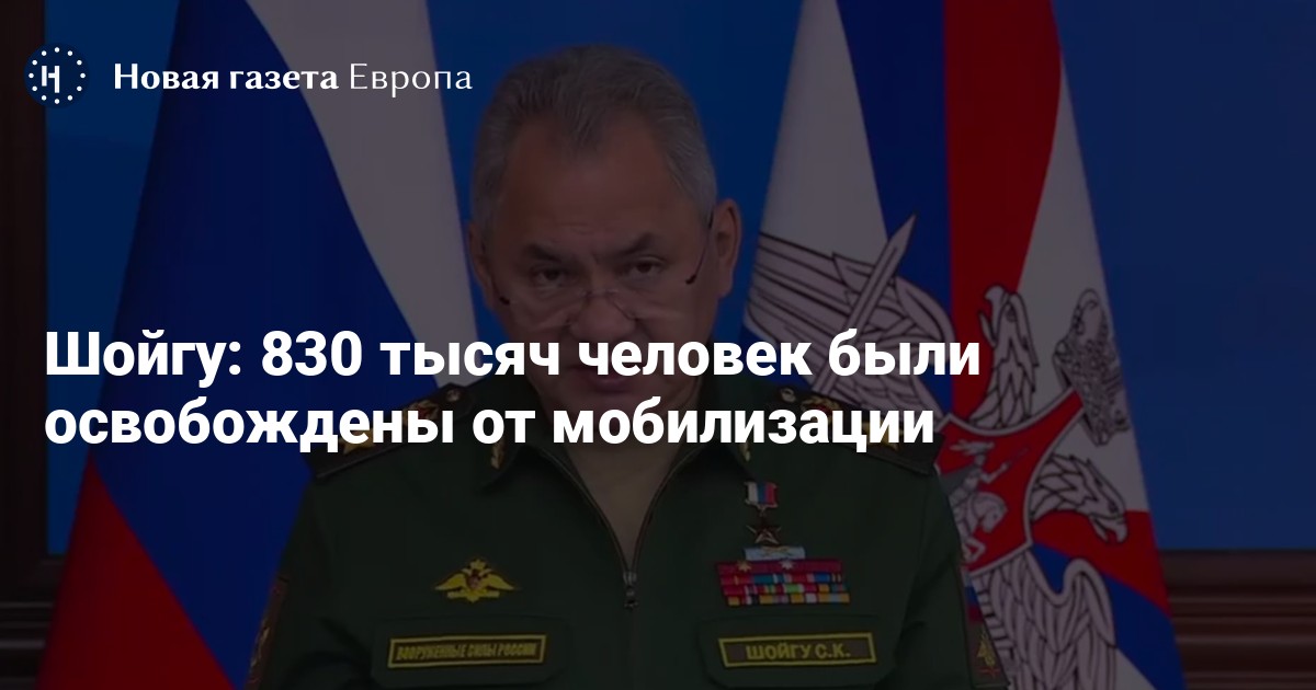 По подсчетам Минобороны России, 830 тысяч граждан России были освобождены от мобилизации. Об этом заявил министр обороны РФ Сергей Шойгу на расширенном заседании коллегии Минобороны РФ.
