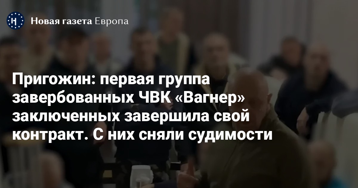 Первая группа заключенных, завербованных ЧВК «Вагнер» для участия в войне в Украине, завершила полугодовой контракт. Об этом сообщает «РИА Новости» со ссылкой на Евгения Пригожина.
